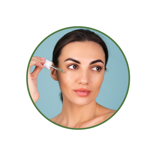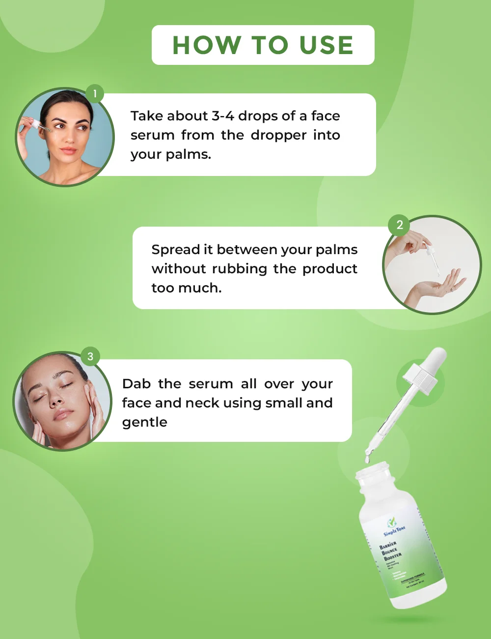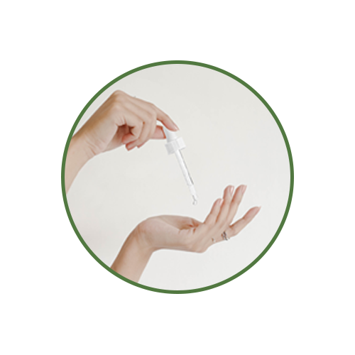 Take about 3-4 drops of a face serum from the dropper onto your palms.